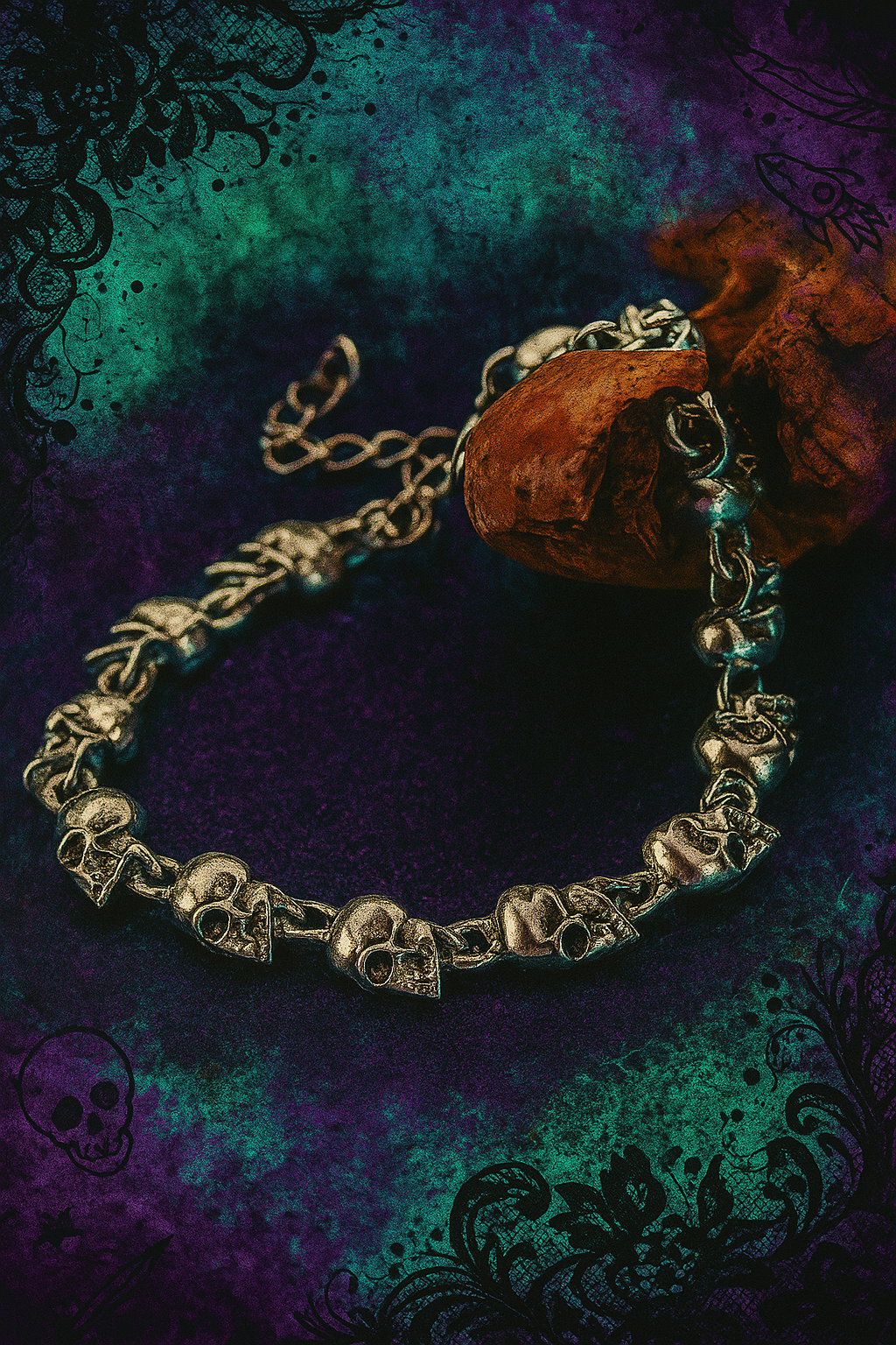 Heavy metal bracelet with skull design, excellent quality and looks great paired with other more feminine pices like nomination bracelets