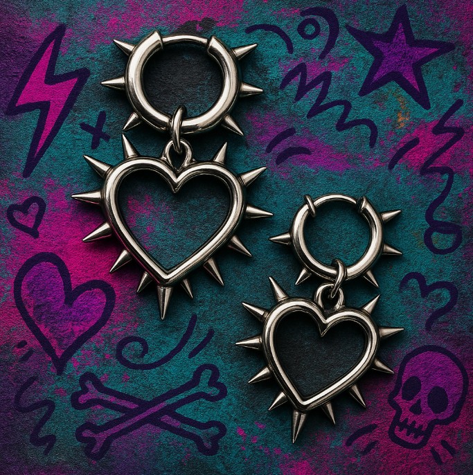 Lightweight but lethal — silver hearts crowned in punk spikes. Soft enough to dance in, savage enough to break rules. Slip them on & let your chaos shine.
